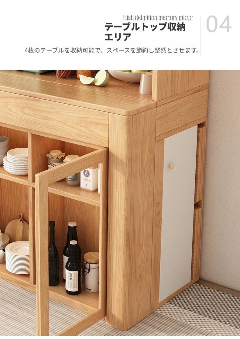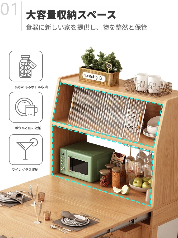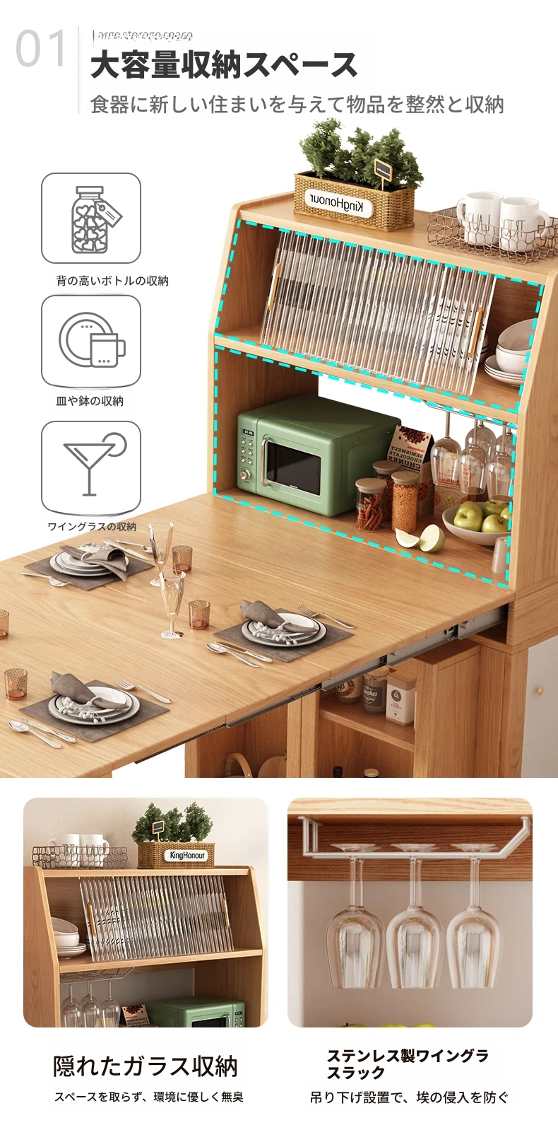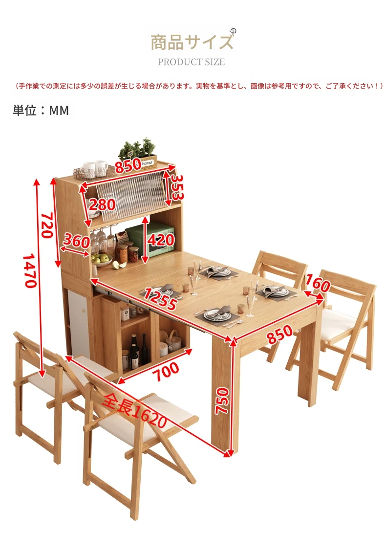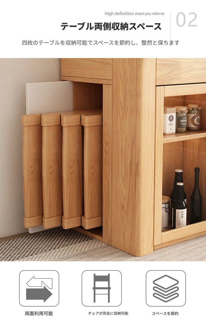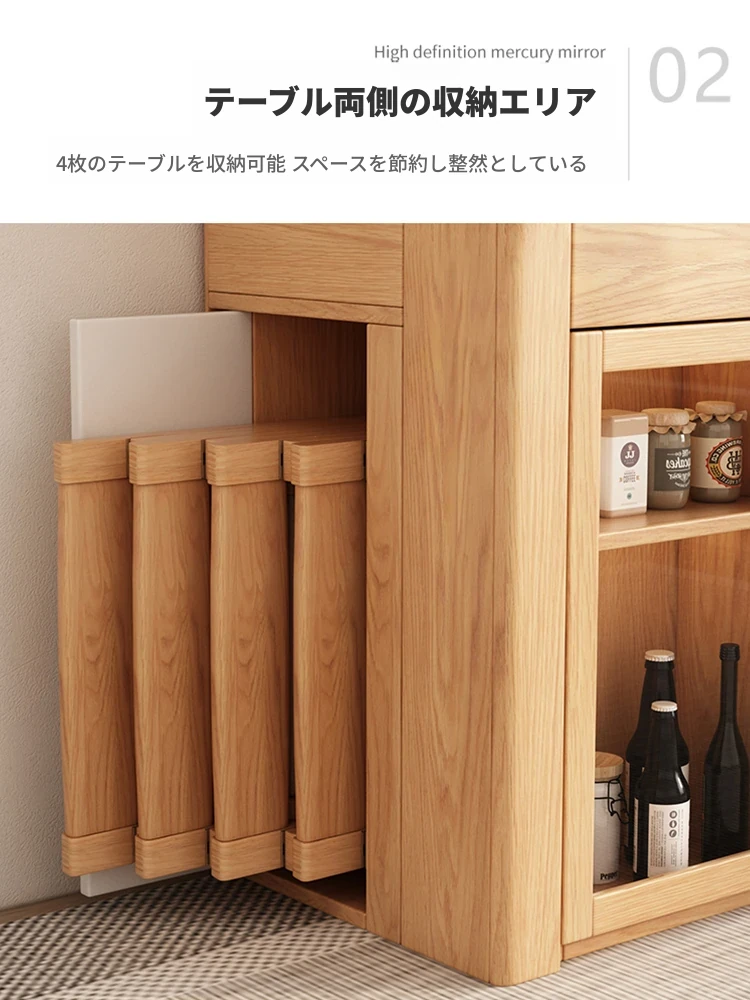 北欧風小型折りたたみダイニングテーブル- 多機能収納キャビネット付伸縮式セット!省スペースでおしゃれな食卓を実現!