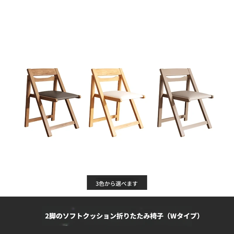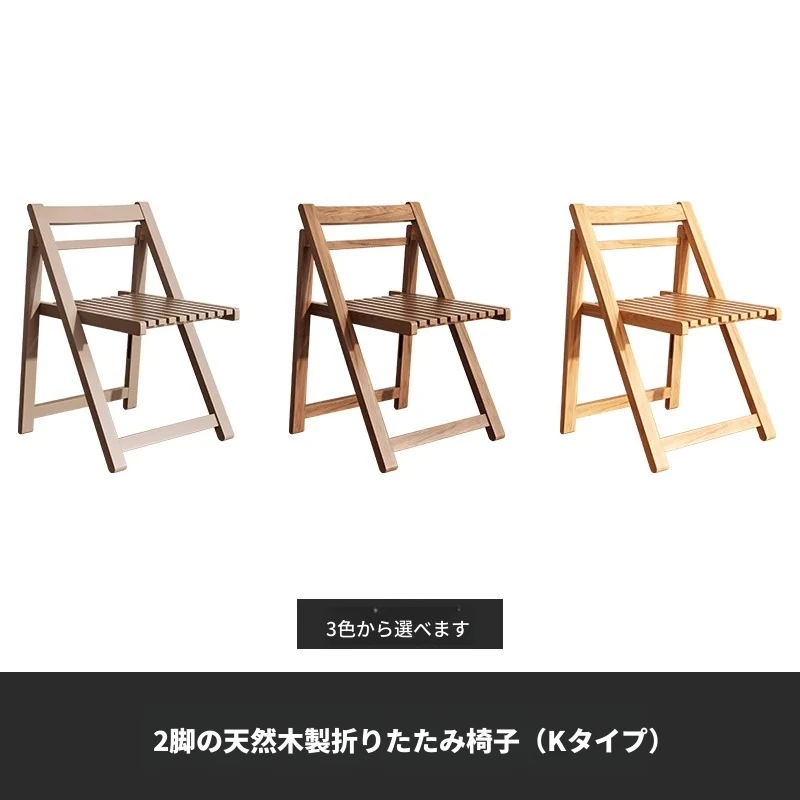 2脚の無垢材折りたたみ椅子(Kタイプ)