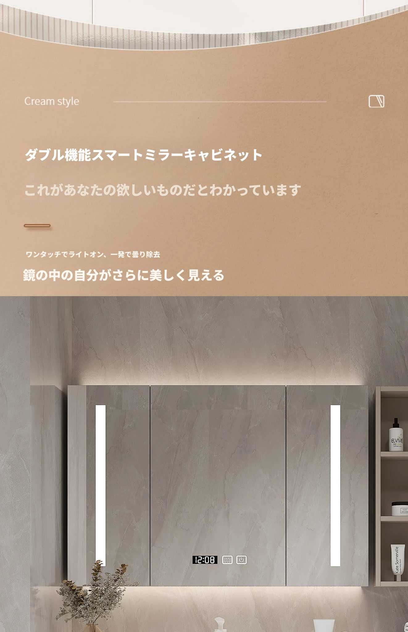 120cm+スマートミラーキャビネット+人工大理石シームレス一体型シンク