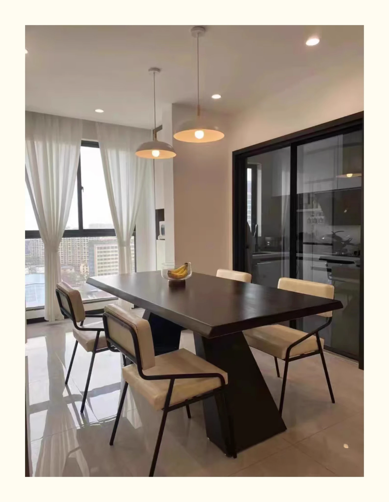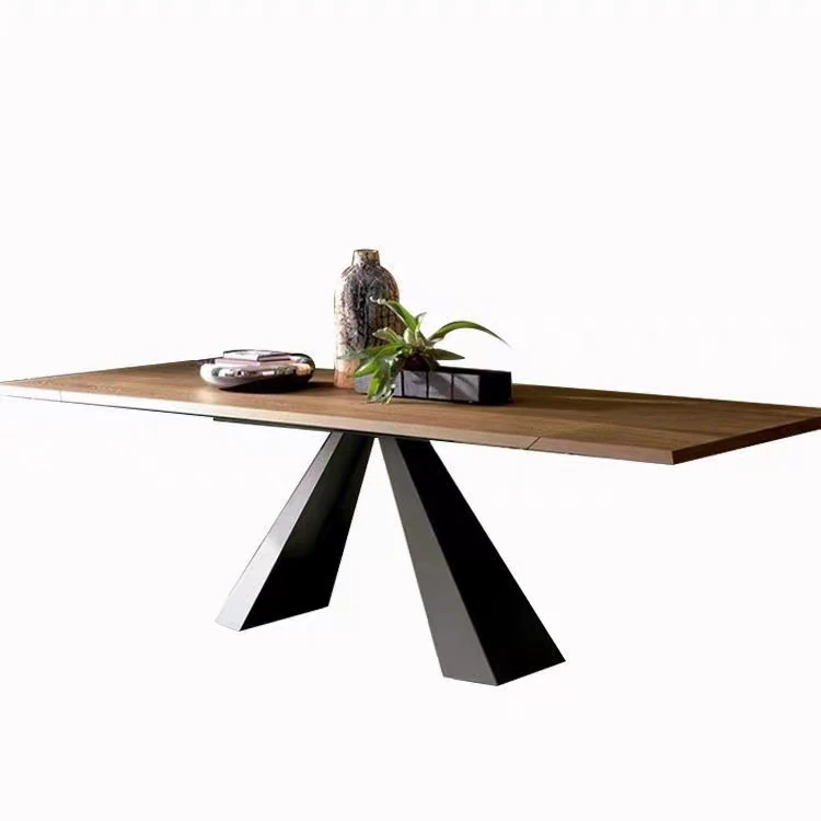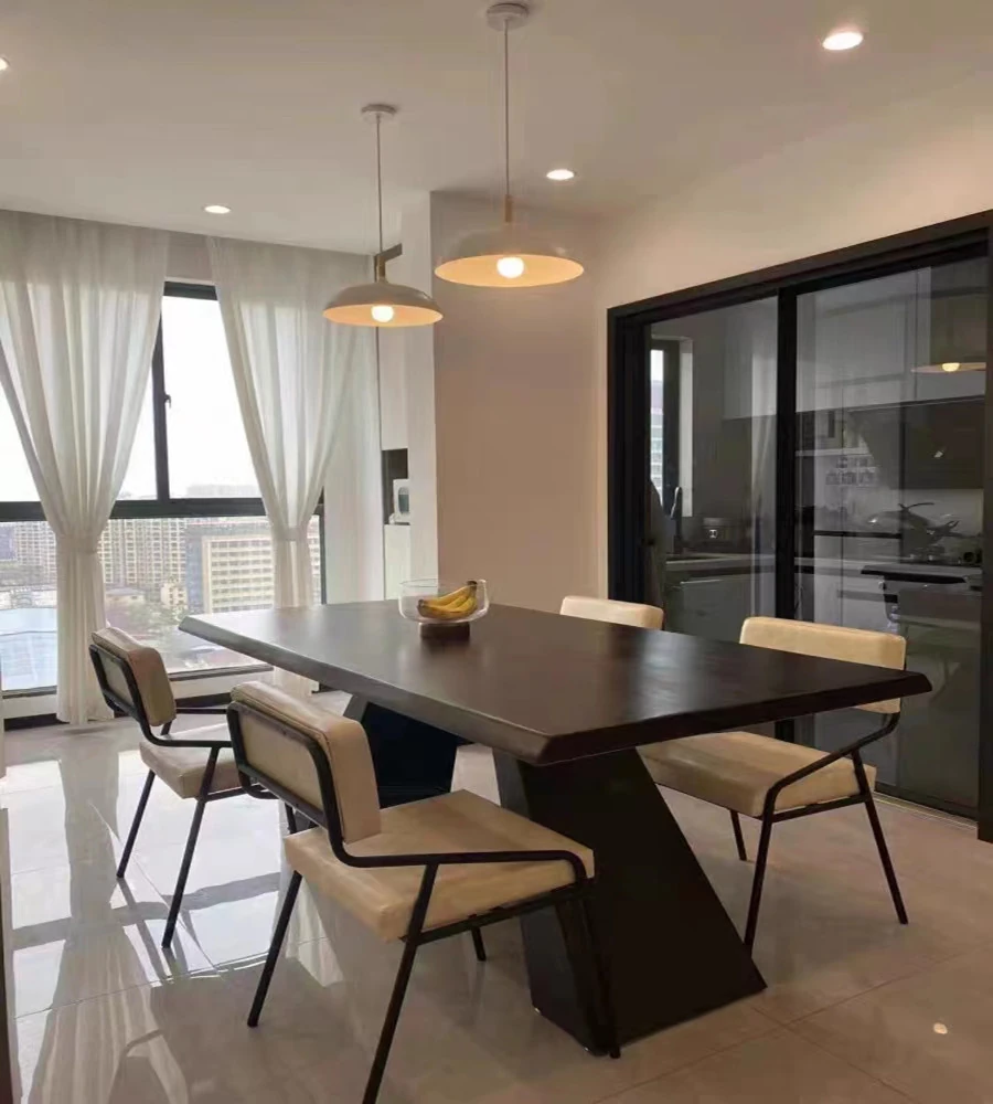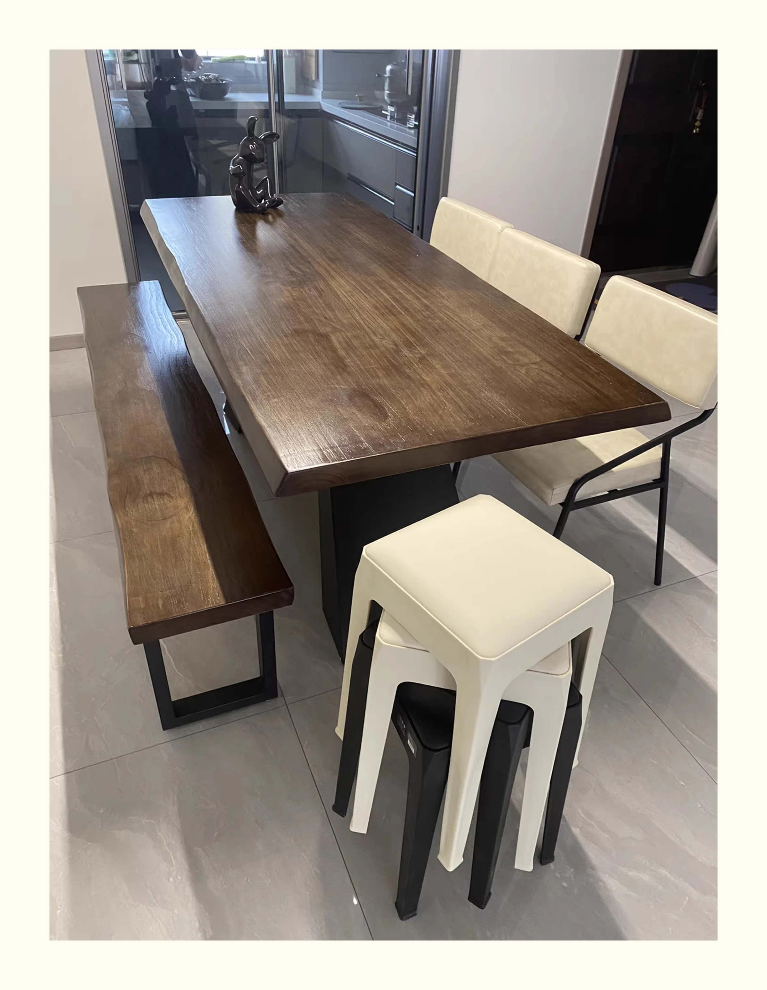 Vintage Industrial Solid Wood Dining Table - Rustic Office Desk & Conference Table Set with Modern Minimalist Designer Chairs