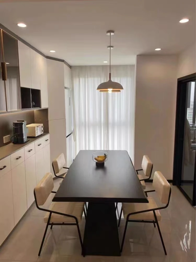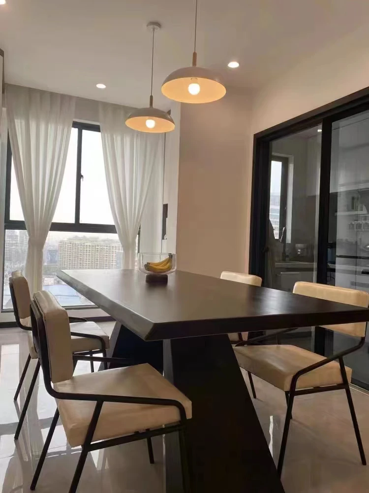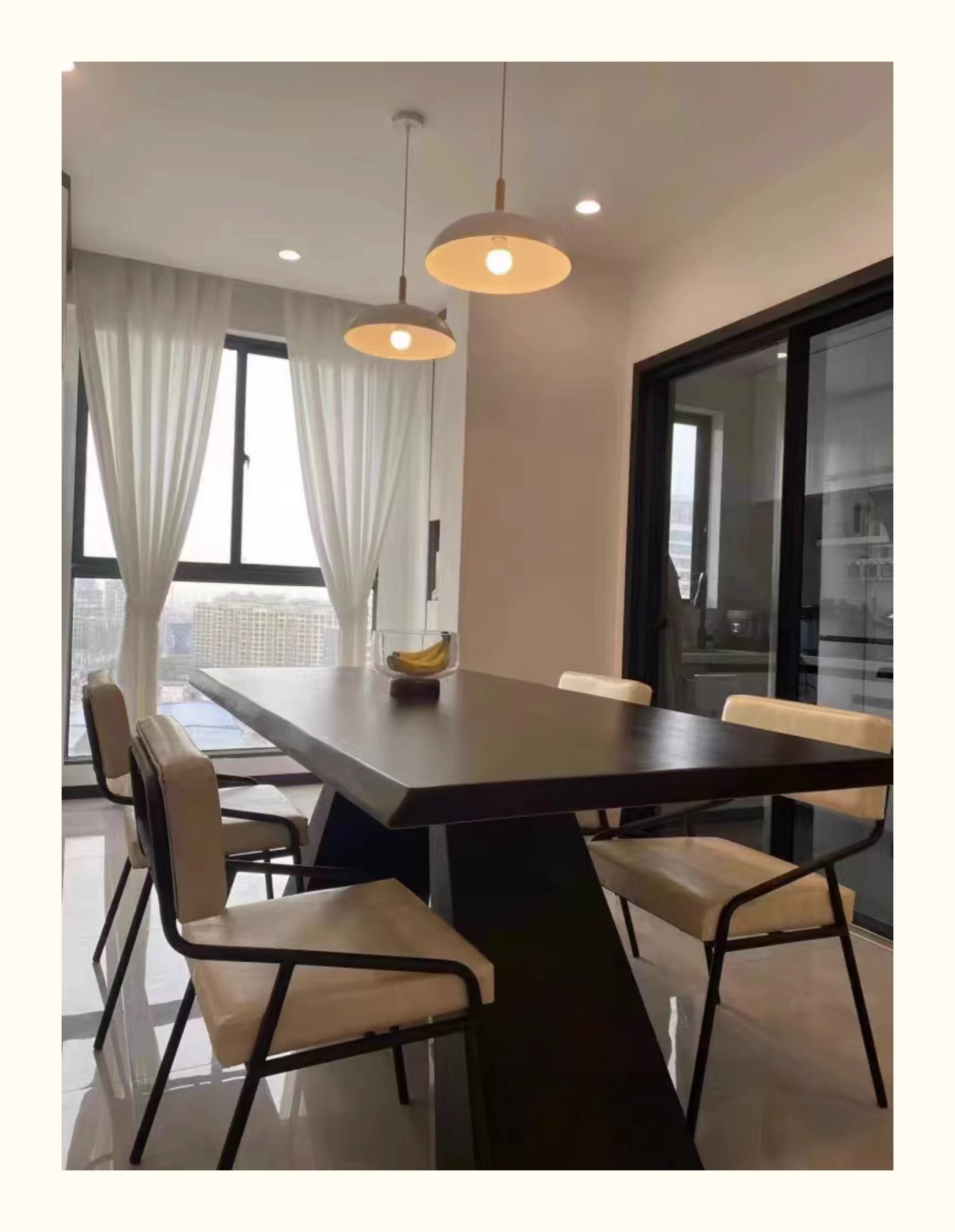 Vintage Industrial Solid Wood Dining Table - Rustic Office Desk & Conference Table Set with Modern Minimalist Designer Chairs