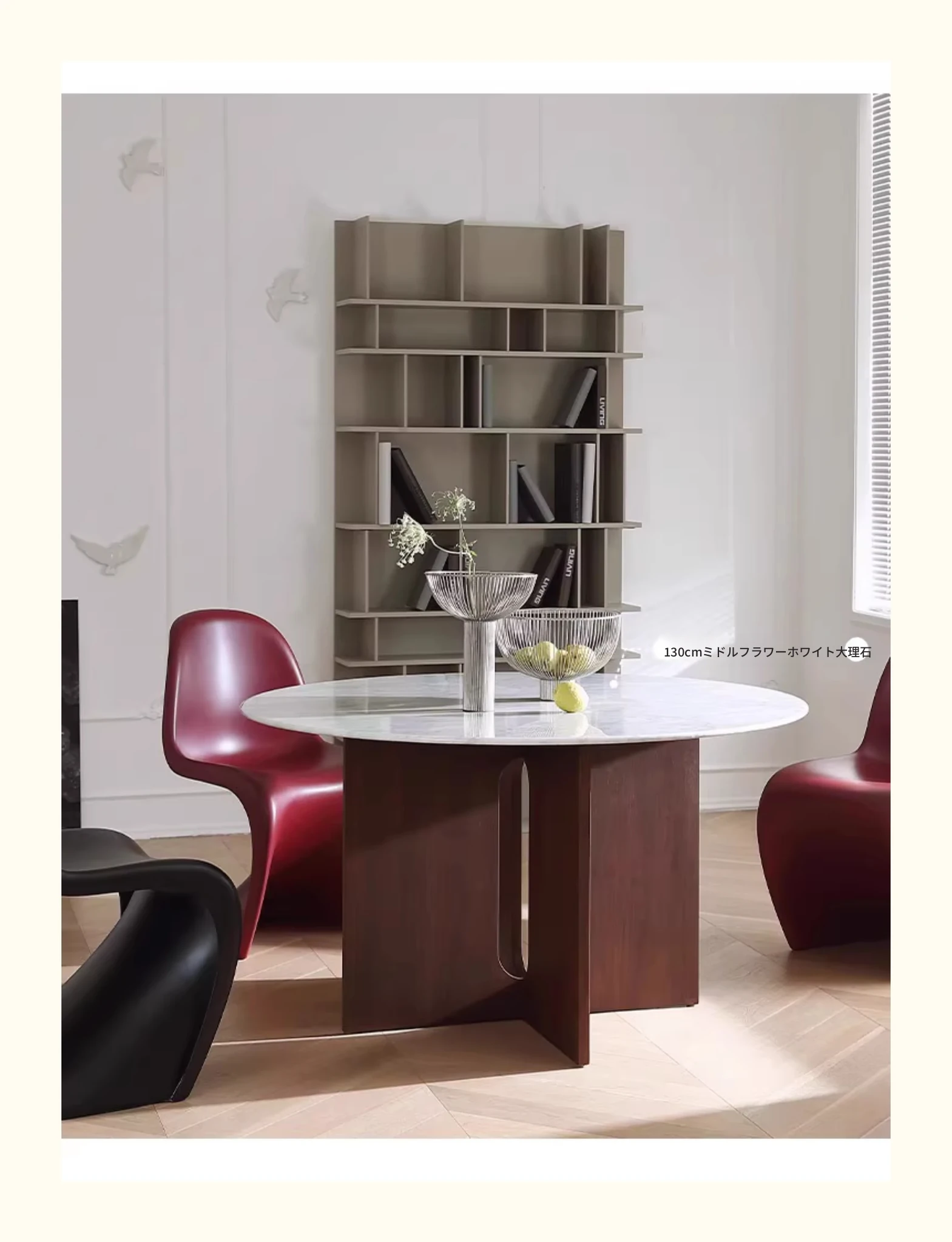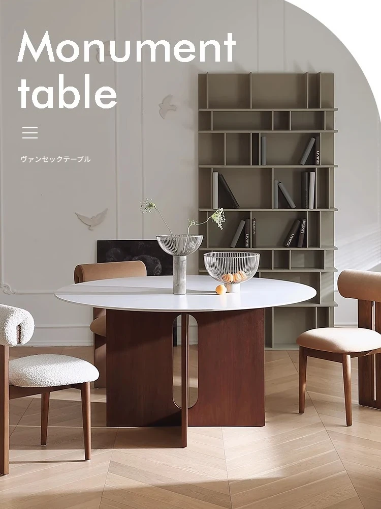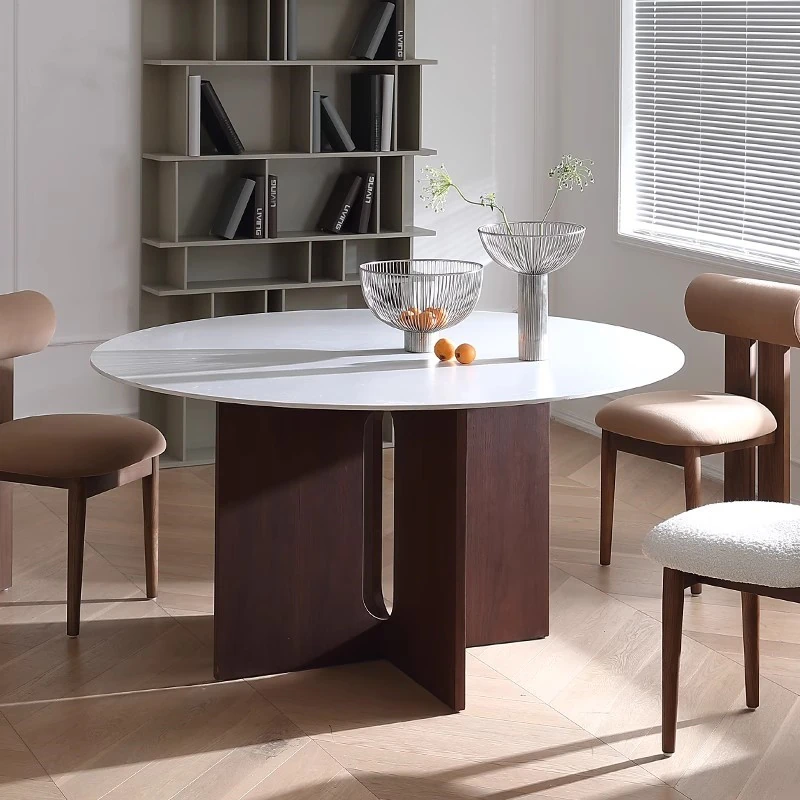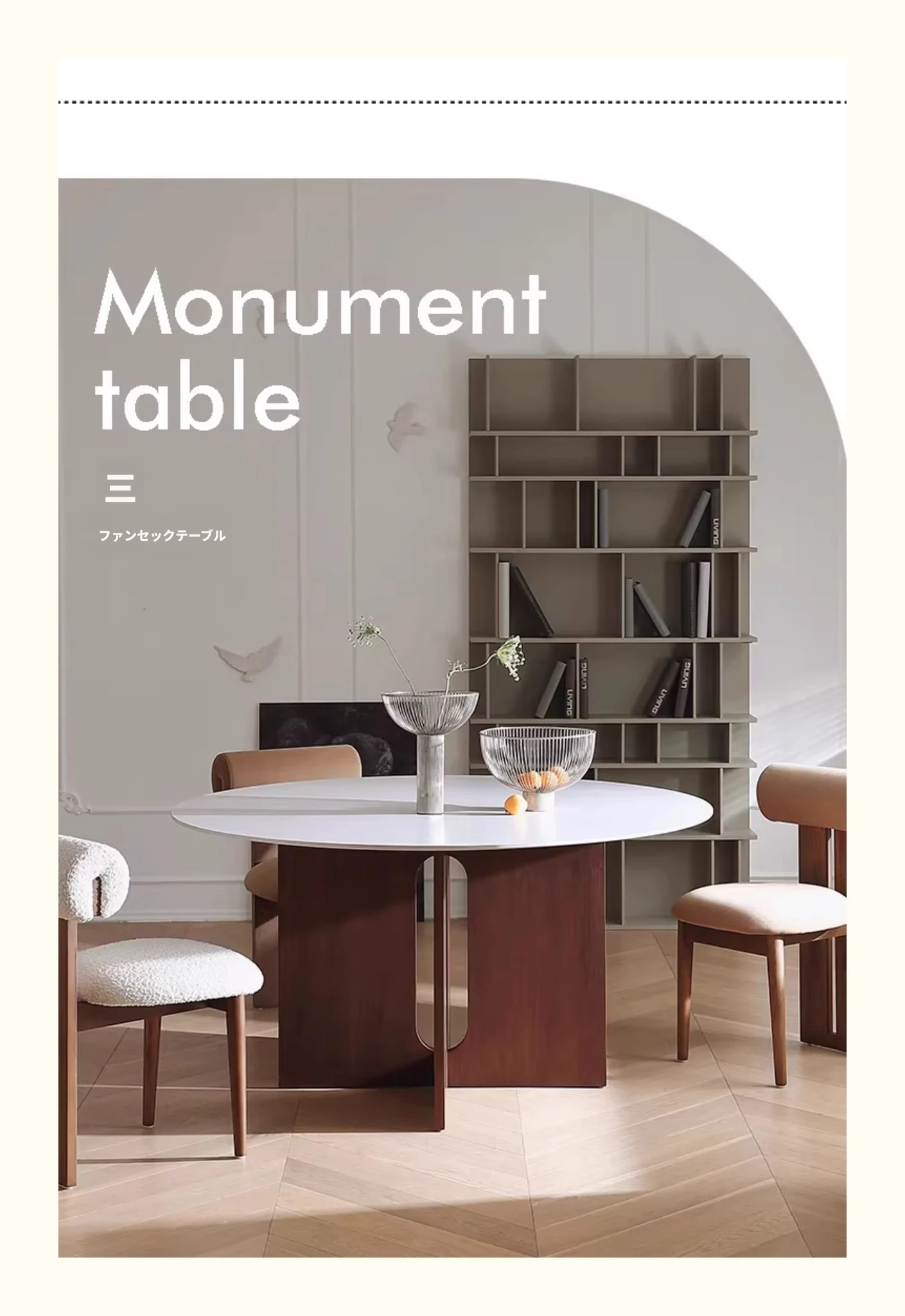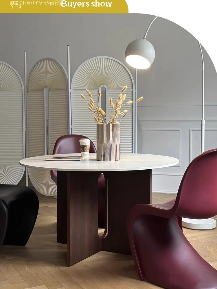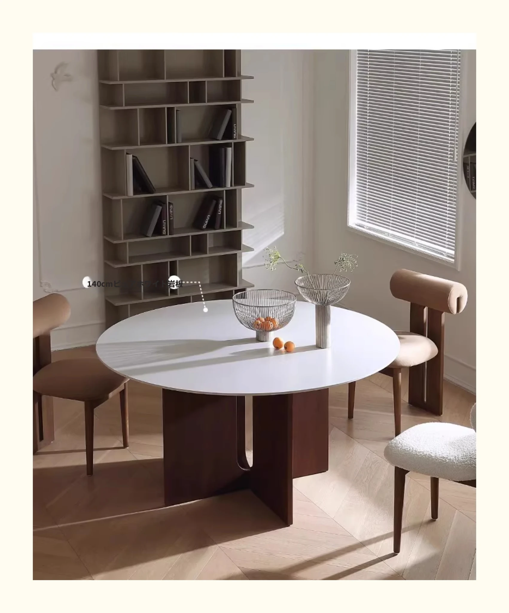 ヴィンテージ風ラウンドダイニングテーブル - フレンチスタイルのデザイナー尚木テーブル、ミネラルストーン仕上げ、家庭用に最適