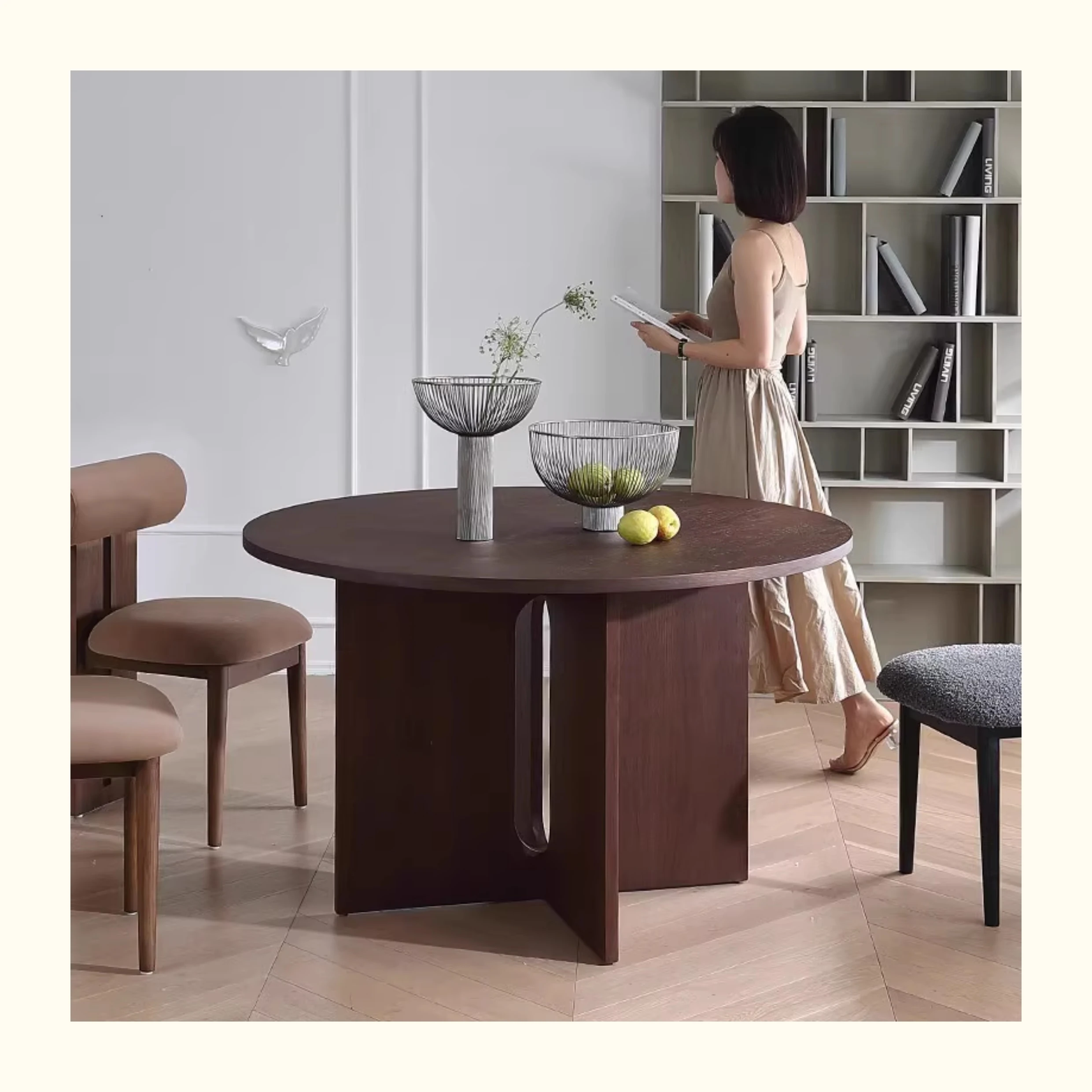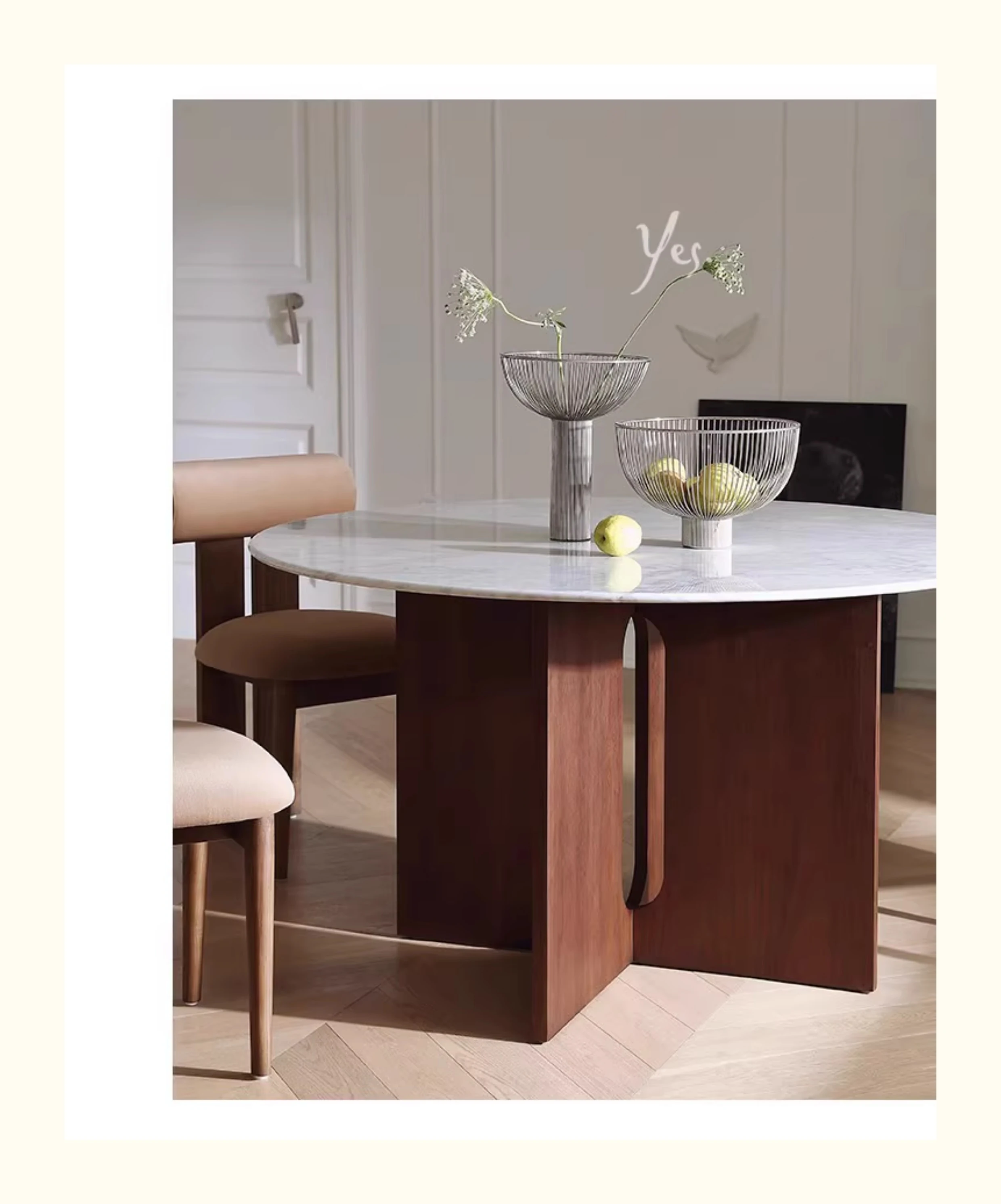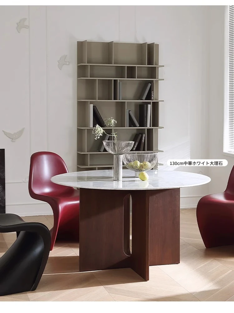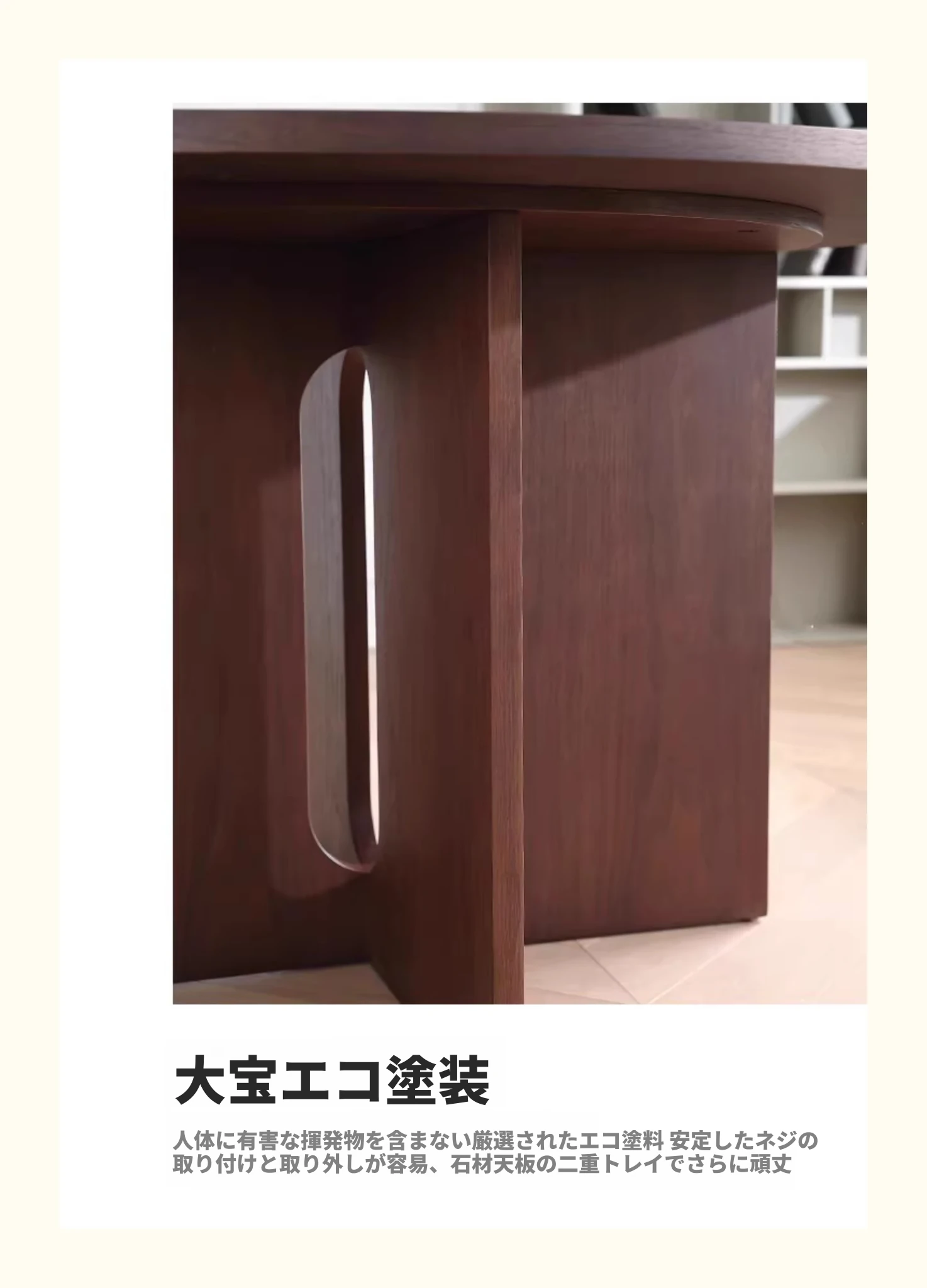 ヴィンテージ風ラウンドダイニングテーブル - フレンチスタイルのデザイナー尚木テーブル、ミネラルストーン仕上げ、家庭用に最適