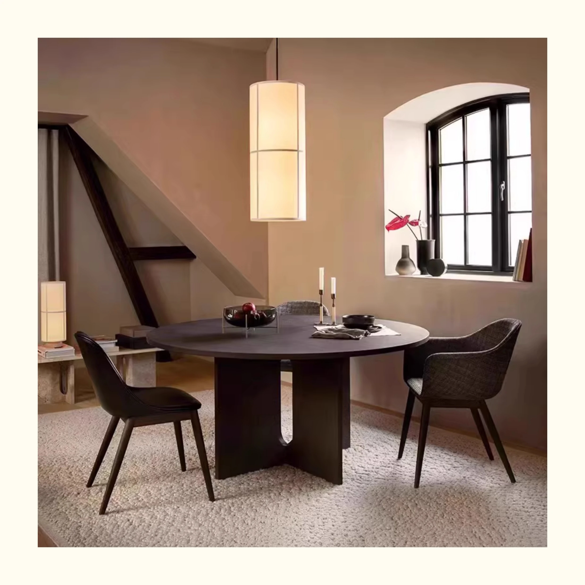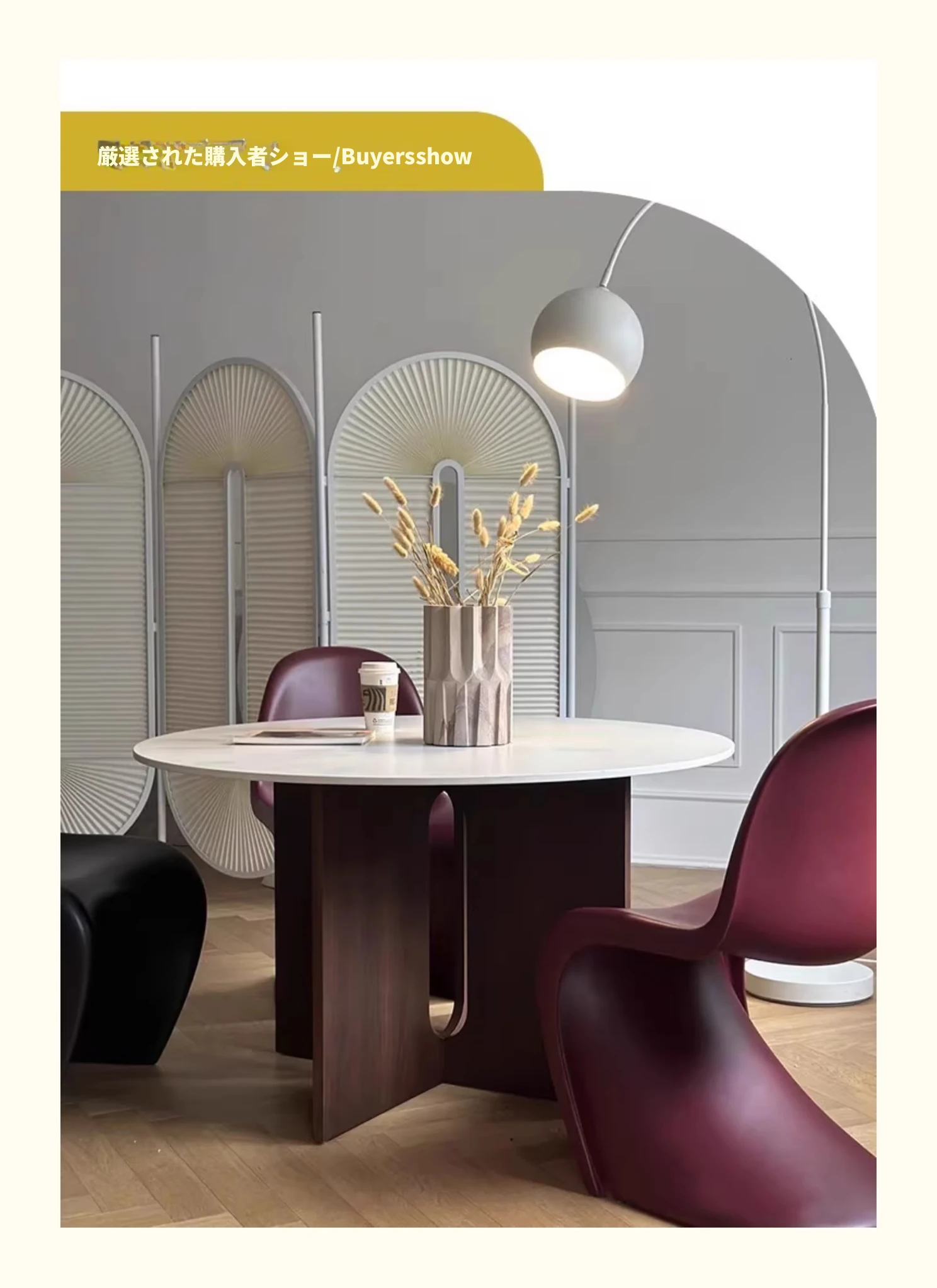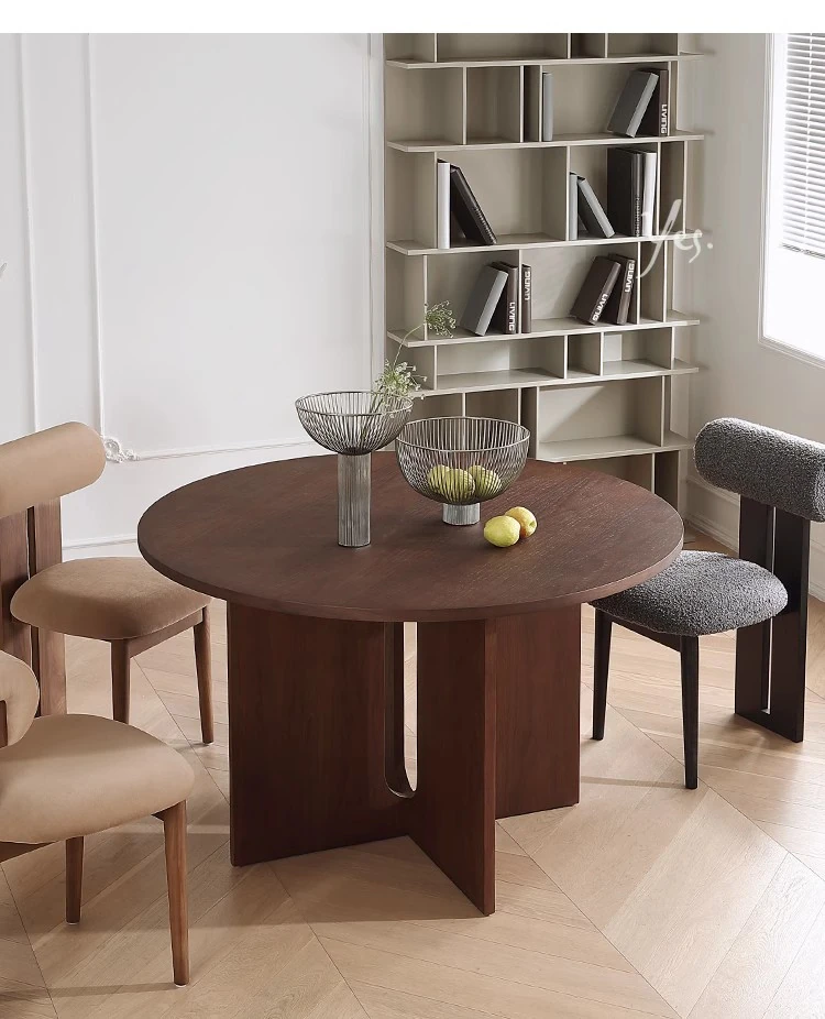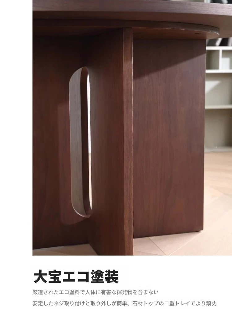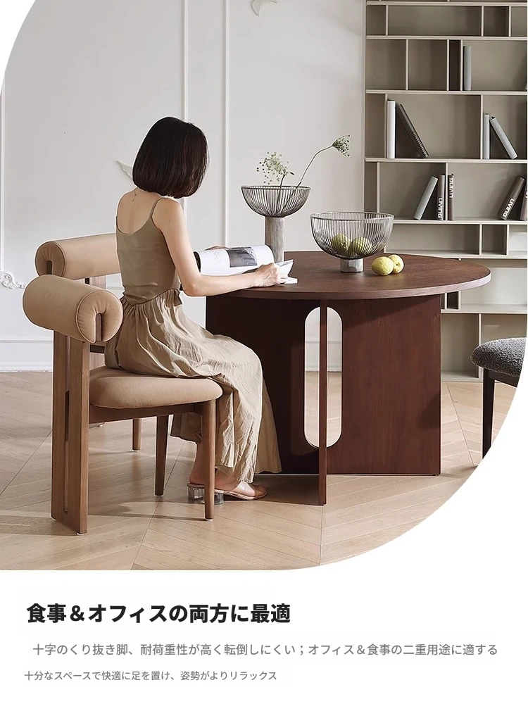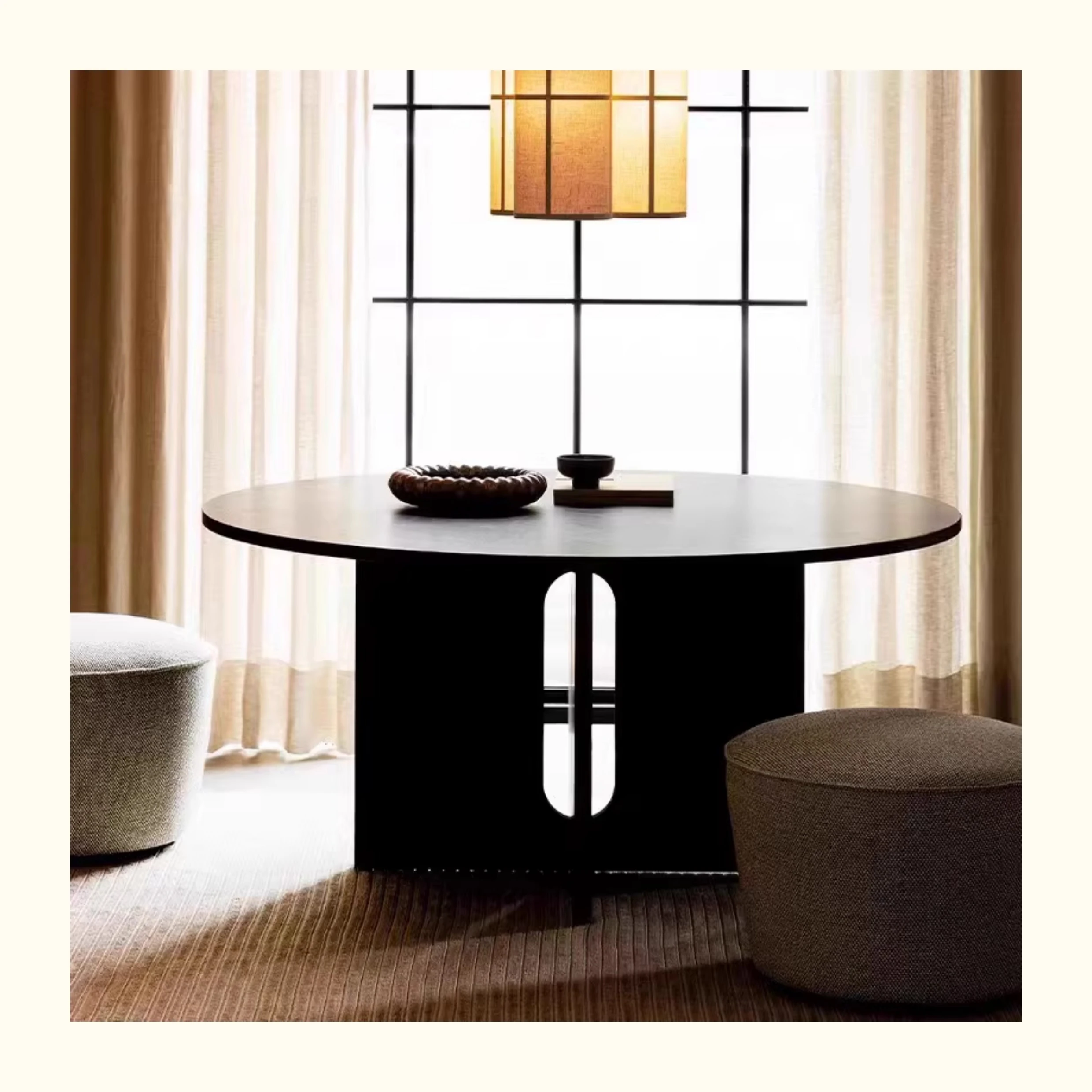 ヴィンテージ風ラウンドダイニングテーブル - フレンチスタイルのデザイナー尚木テーブル、ミネラルストーン仕上げ、家庭用に最適